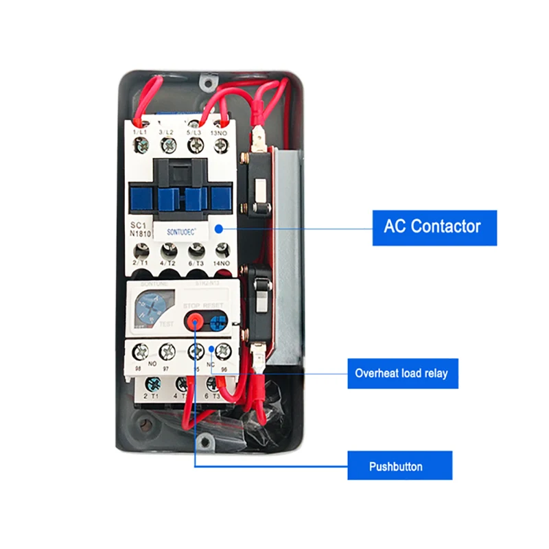 Starter magnetyczny (DOL) Silnik, tj. Przełącznik magnetyczny jest wykorzystywany do kontrolowania początkowego i zatrzymania silnika (lub silników). Przełączniki magnetyczne odgrywają tutaj kluczową rolę, kontrolując włączenie obwodu zgodnie ze zmianami w zewnętrznym polu magnetycznym, realizując w ten sposób kontrolę silnika.