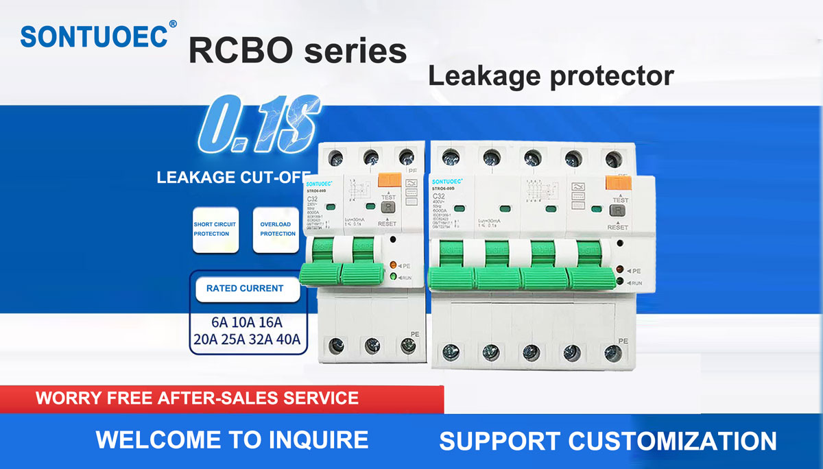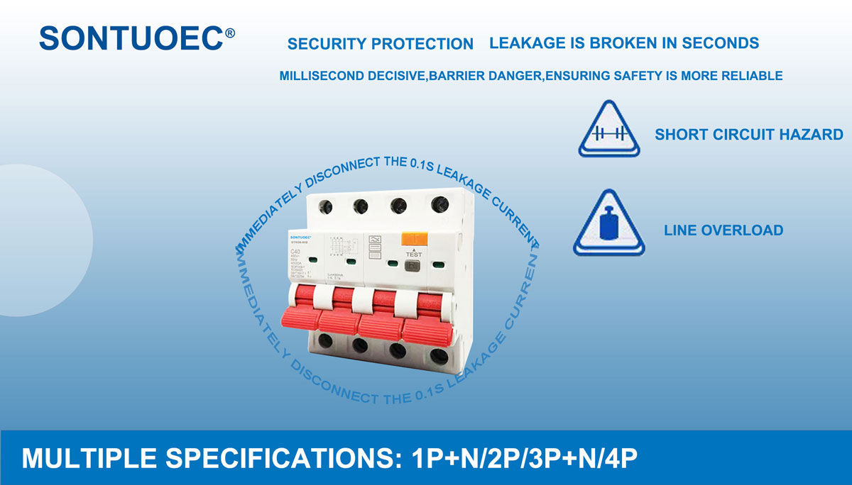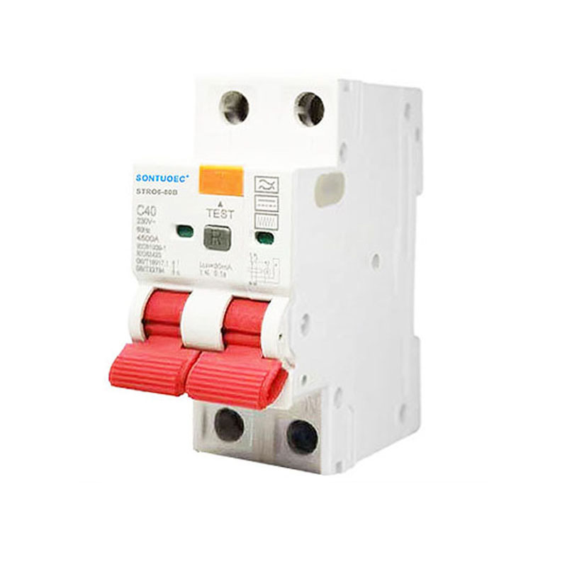 Ochrona przed upływem: RCBO stro6-80b jest w stanie wykryć prąd resztkowy (tj. Prąd wycieku) w obwodzie. Gdy prąd resztkowy przekroczy próg ustawiony, RCBO B Model 2p 4P wyłącz w wyłącznik prądu resztkowego odciął obwód w bardzo krótkim czasie, aby zapobiec wypadkom prądem i pożarom elektrycznym.