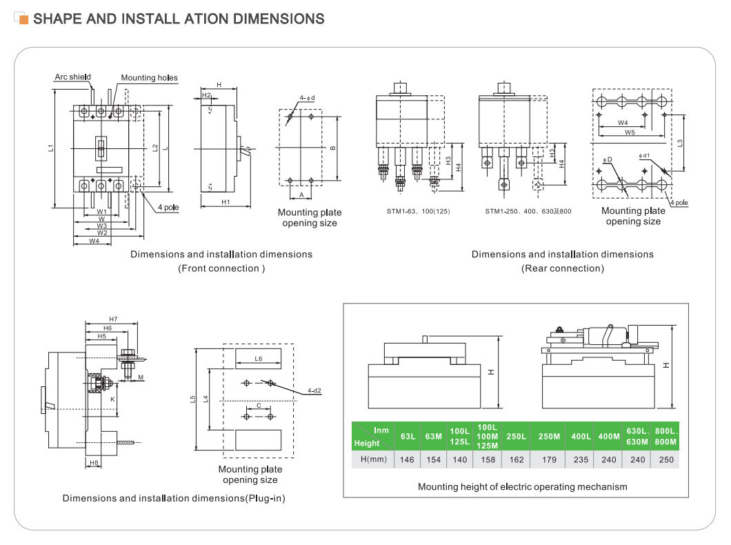 Zastosowania: Elektryczne wyłączniki kompaktowe są szeroko stosowane w systemach elektrycznych w budynkach mieszkalnych, komercyjnych, przemysłowych i transportowych. W budynkach mieszkalnych służy do ochrony bezpieczeństwa obwodów domowych i sprzętu elektrycznego; w obszarze komercyjnym służy do ochrony systemów elektrycznych dużych budynków i obiektów komercyjnych; w przemyśle służy do kontroli i ochrony bezpiecznej pracy urządzeń i maszyn fabrycznych; w transporcie służy do ochrony stabilnego działania sygnalizacji świetlnej, sygnałów kolejowych i innego sprzętu.