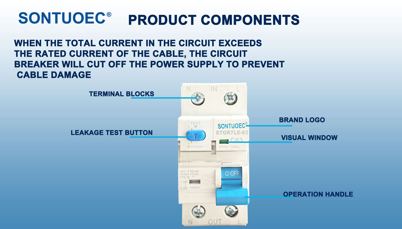 SONTUOEC to jeden z chińskich dostawców/producentów specjalizujących się w produkcji różnych małych urządzeń elektrycznych. STRO7LE-63 RCBO jest stosowany w jednofazowym obwodzie zamieszkania o napięciu AC 50/60 Hz, napięciu znamionowym 240 V i jego samozabezpieczeniu do maksymalnego prądu zwarciowego 40 A. Może chronić cywilny obwód elektroniczny przed przeciążeniem i zwarciem. Produkt ten ma zalety małej objętości, dużej zdolności wyłączania, a przewód pod napięciem jest jednocześnie odcinany, chroniąc również osobę przed porażeniem prądem, gdy przewód pod napięciem jest podłączony przeciwnie. I jest zgodny z normą IEC 61009-1.